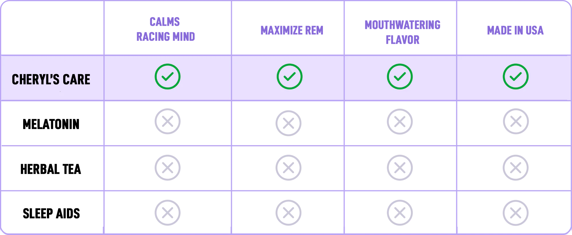 Cheryl’s Night Cap addresses issues with Melatonin, while drastically building on its benefits. We took what we love about Melatonin and removed what we didn’t (crash, anxiety, jitters, poor sleep, headaches, and digestive issues). Cheryl’s Nine amazing ingredients improve energy, focus, mood, sleep and gut health, we created a drink that really can’t be compared to Melatonin… which is exactly what we were going for.