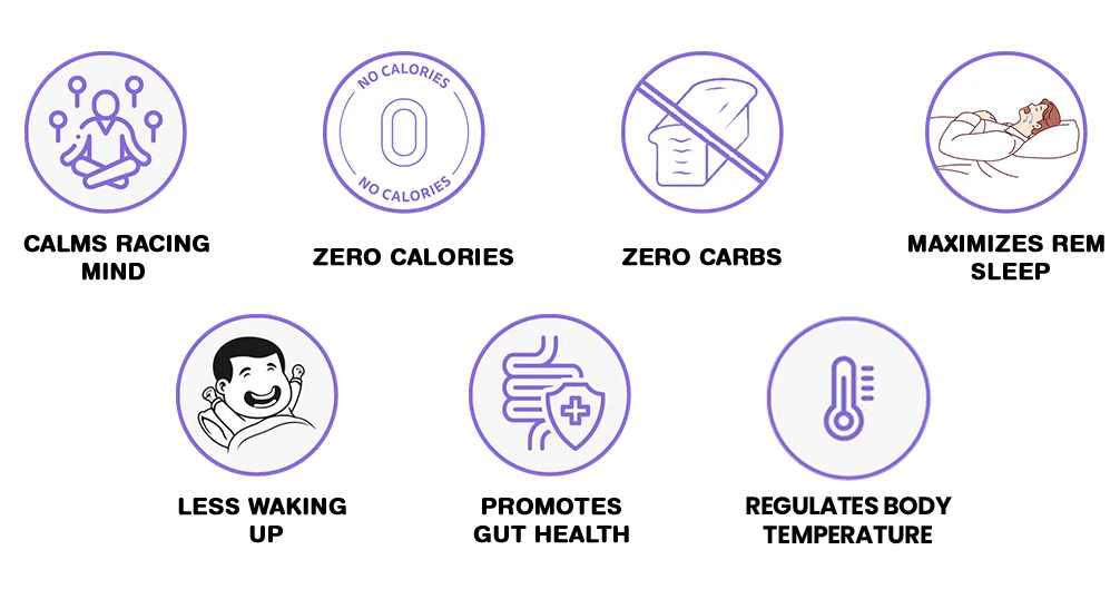 5-HTP, GPLC. It helps you sleep quickly and wake up with a relaxed and alert mind.
