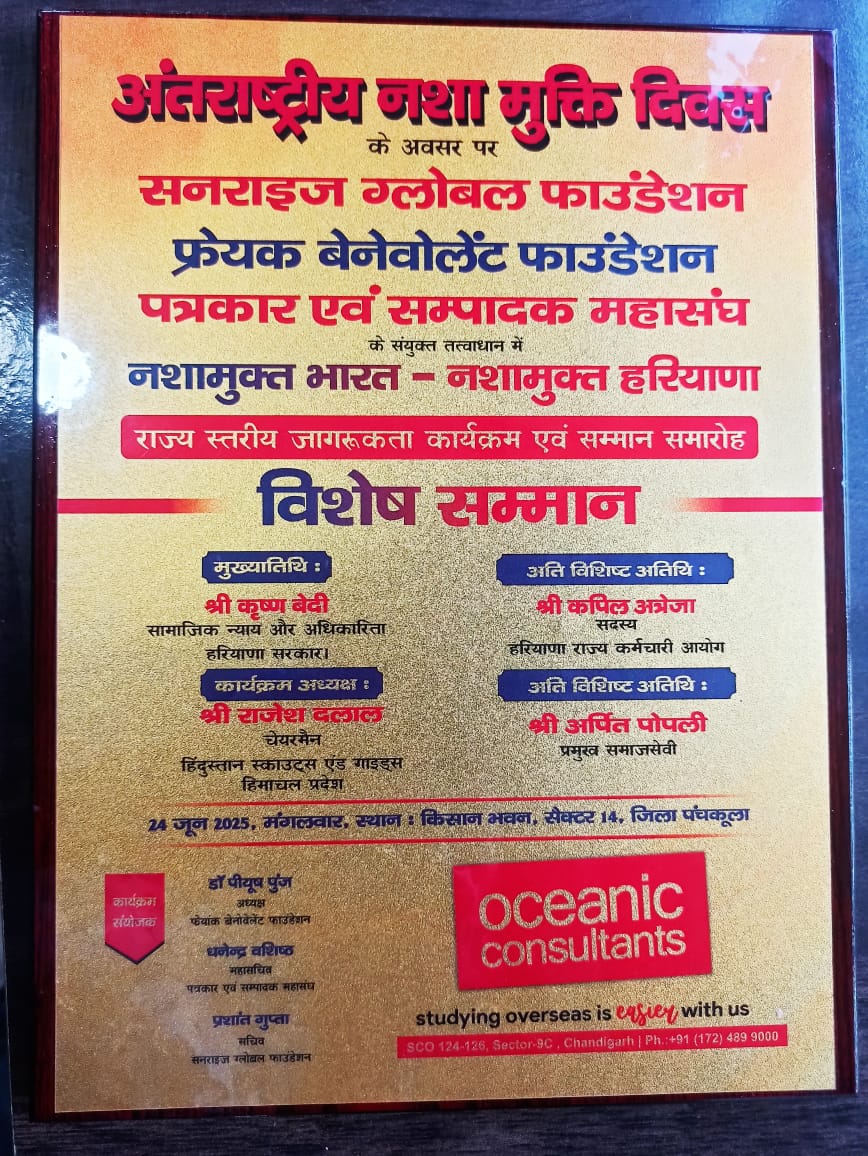 » Manisha Chaudhary was honored on International Drug Abuse Day for her fight against drug abuse.